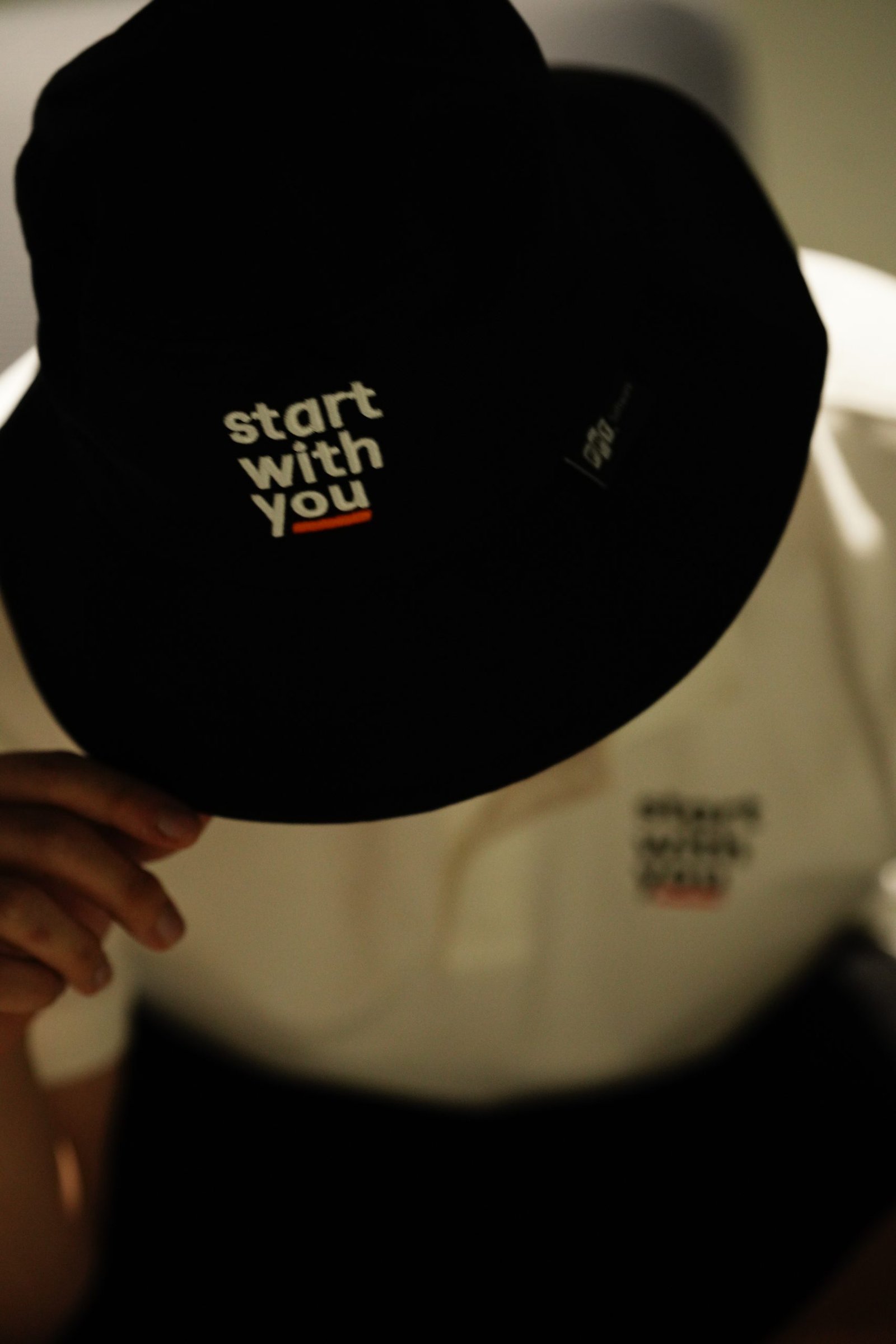 The ‘Start With You’ bucket hat is the perfect choice for outdoor activities and an essential fashion accessory. With its refined design, durable material, and sharp stitching, the ‘Start With You’ bucket hat is a standout piece in this collection.